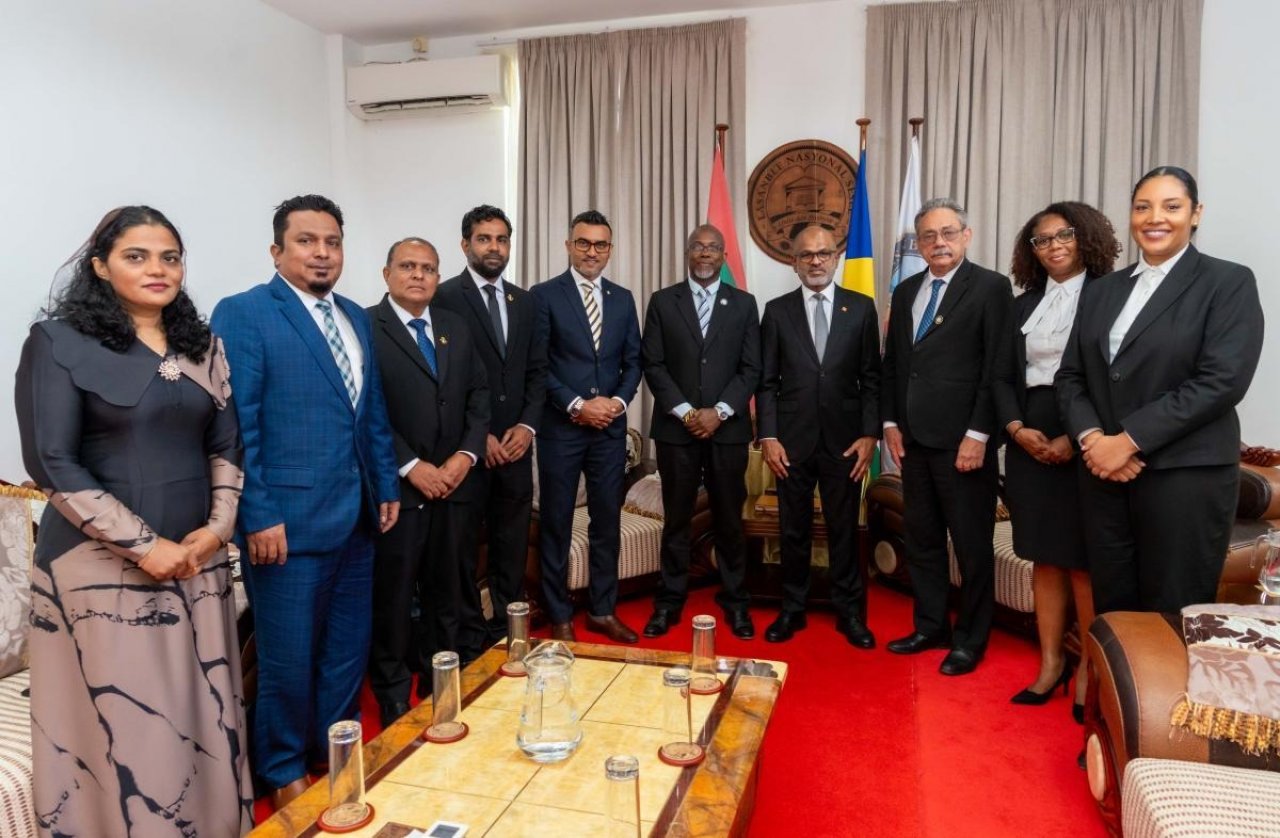 ސީޝެލްސްއަށް ކުރައްވާ ދަތުރުފުޅުގައި ރައްޔިތުންގެ މަޖިލީހުގެ ނާއިބް ރައީސް އަޙުމަދު ނާޒިމްއާއި ވަފްދުގެ ބޭފުޅުން މިއަދު، ސީޝެލްސްގެ ޕާލަމެންޓްގެ ރައީސްގެ އަރިހަށް އިޙުތިރާމްގެ ޒިޔާރަތެއް ކުރައްވައިފިއެވެ. ސްޕީކަރ ރޮޖާ މާންސިއެންއާއެކު އޮތް ބައްދަލު ކުރެއްވުމުގައި އަޙުމަދު ނާޒިމްގެ އިތުރުން، މި ވަފުދުގައި ހިމެނިވަޑައިގަންނަވާ ރައްޔިތުންގެ މަޖިލީހުގެ މައިނޯރިޓީ ލީޑަރު އިބްރާހިމް ނާޒިލްއާއި މެމްބަރު ހުސައިން ރިޒާ އާދަމްއާއި މެމްބަރު ހަސަން ޒަރީރާއި މެމްބަރު ހުސްނީ މުބާރަކް ބައިވެރިވެ ވަޑައިގަތެވެ.